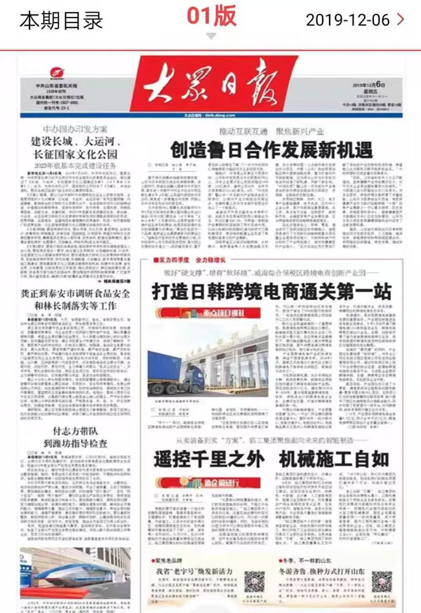大众日报头版:点赞山东米兰·(milan)中国官网入口智能制造!